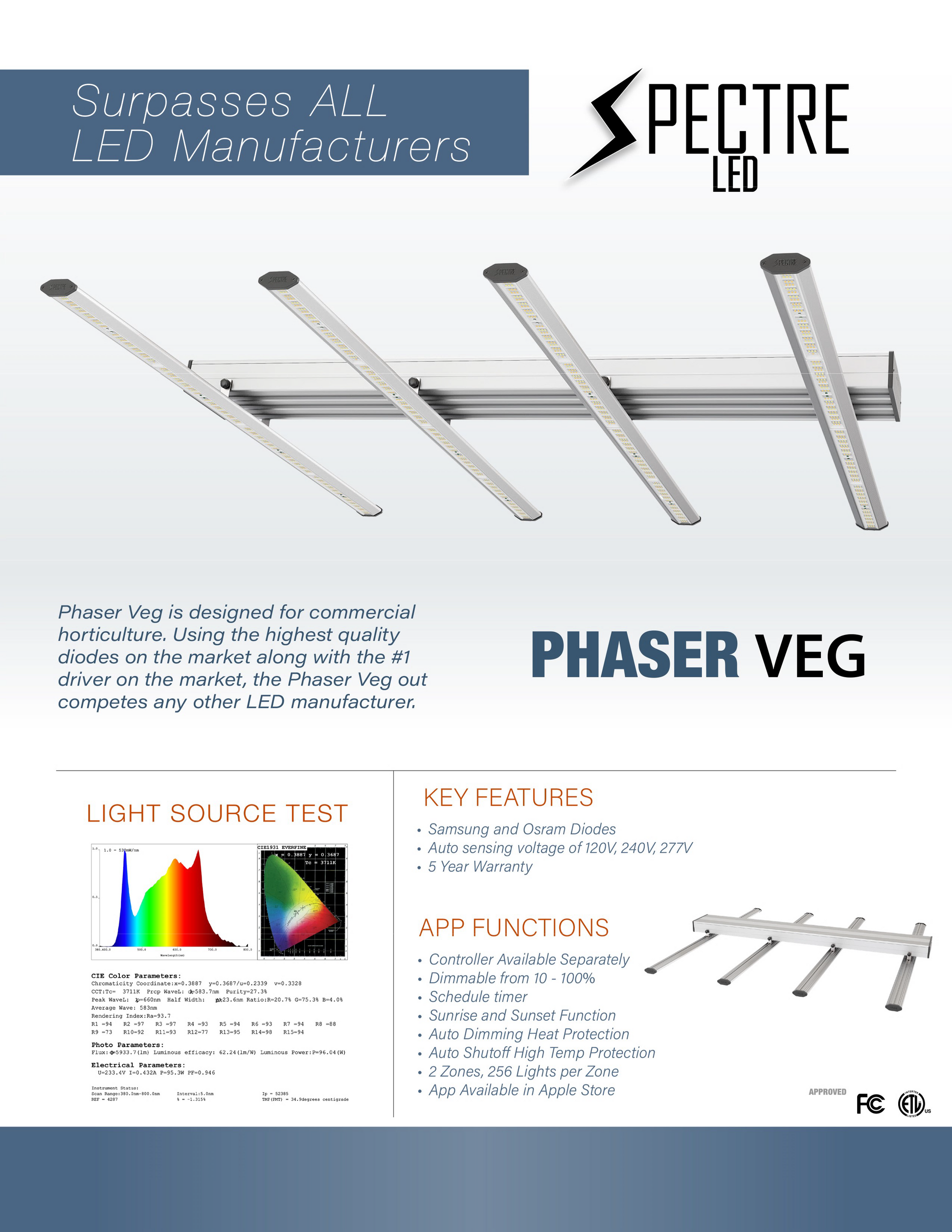 The Spectre LED - PHASER VEG combines unparalleled light output, efficient design, and advanced control options, making it the go-to choice for commercial growers aiming to maximize yield and growth potential.